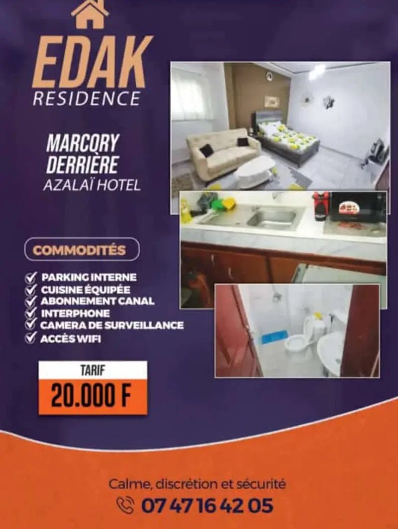 Résidence meublée agréable très discret non loin des hyper marché cinéma, tout est réuni pour votre confort.